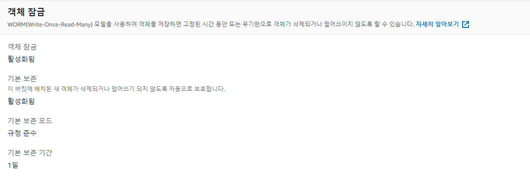 볼트기능 ON시켜서 버킷을 생성하면 볼트 OFF불가(영구 볼트 ON)