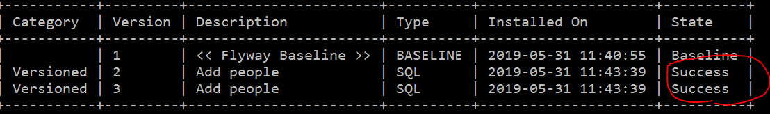 flyway migrate 명령을 통해 DB반영(마이그레이션) 한다.