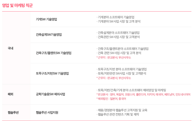 쉽게 말하자면 각 분야의 제품(건설/ 웹솔루션 sw)을 판매하고 홍보/마케팅 하는 직군이라고 볼 수 있다.