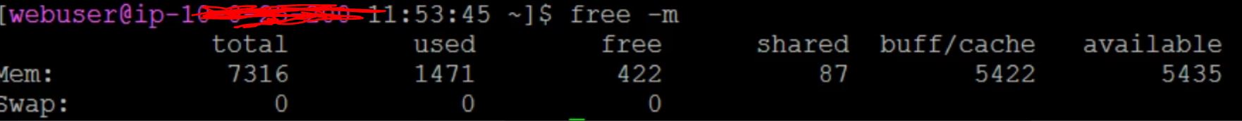 free는 400M밖에 남지 않았다! 그리고 buff/cache 영역에 5.4G가 할당되어 있는 것을 확인하였다.