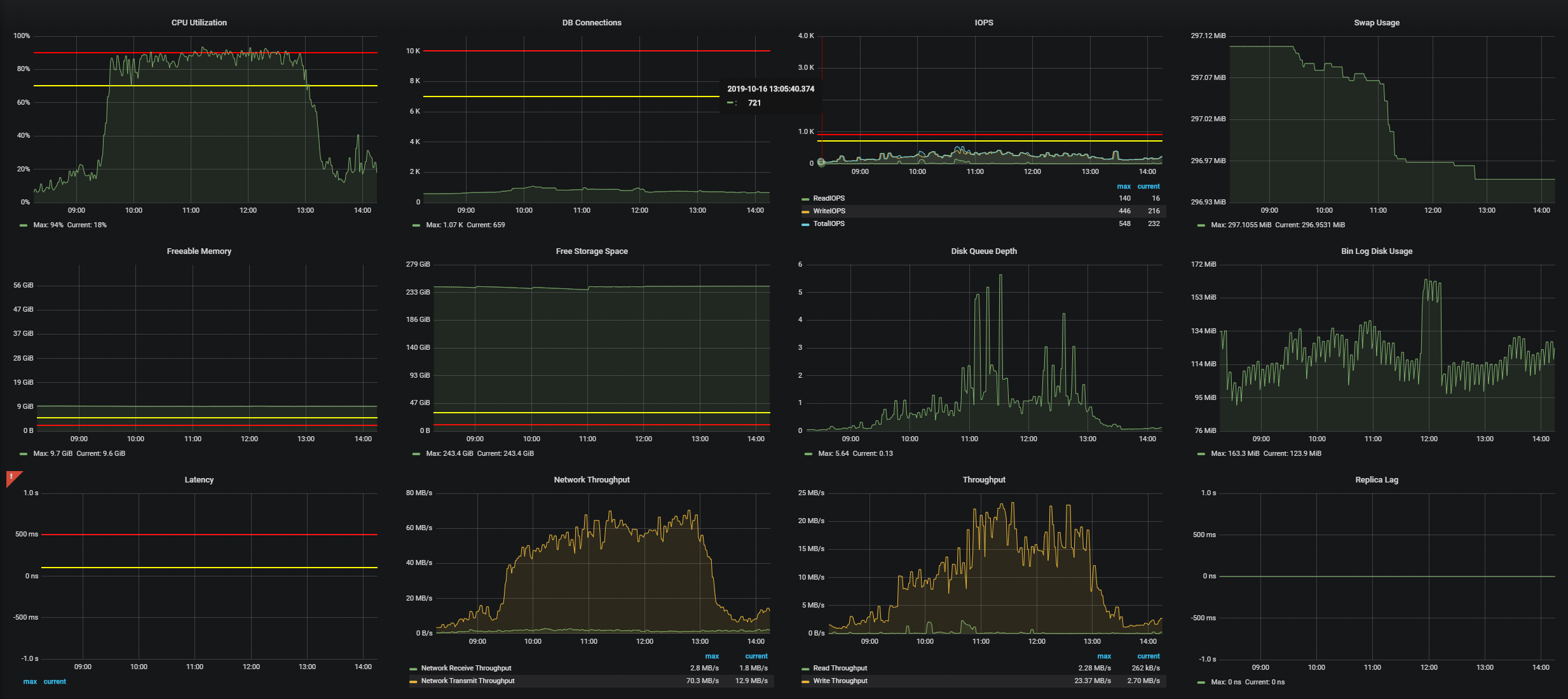 RDS를 쓰는 우리의 tmp 기본값은 16MB로 설정되어 있었고 해당 값을 256MB로 늘림.