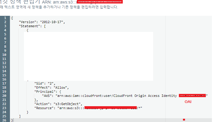 AWS": "arn:aws:iam::cloudfront:user/CloudFront Origin Access Identity <OAI>를 설정해주면된다.