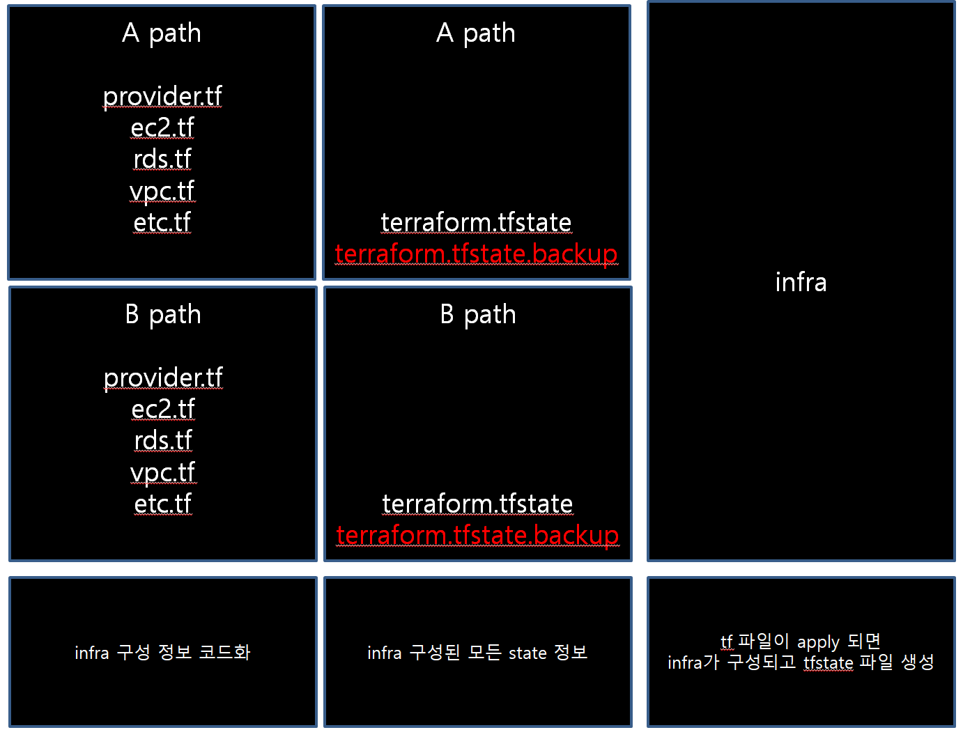 테라폼은 기본적으로 폴더내의 .tf 파일을 참조한다. 즉, 폴더가 같은 곳에 있는 .tf 파일은 명령어 하나에 다 같이 동작한다는 것이다.